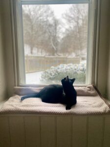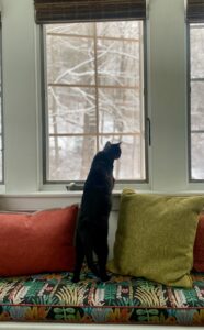 We have a stone house, which means we have many extra wide window ledges. They make for a cozy spot for cat naps, critter watching, and perimeter checks/sentry duty!